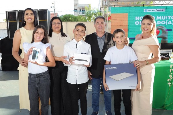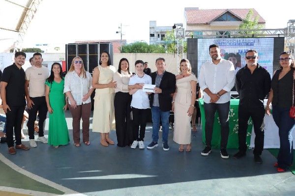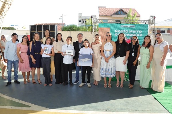 A premiação entregue pelas mãos do prefeito Miranda Neto e pela secretária de Educação, Andrea Berto, contemplou os três primeiros colocados de cada etapa, com notebook para o 1º lugar, tablet para o 2º lugar e smartphone para o 3º lugar.