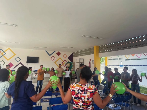 Realizada pela Vigilância em Saúde, com o apoio de profissionais da equipe multidisciplinar, da Atenção Básica e do CAPS, o momento foi voltado para professores, coordenadores, auxiliares de serviços gerais, cozinheiros e porteiros.