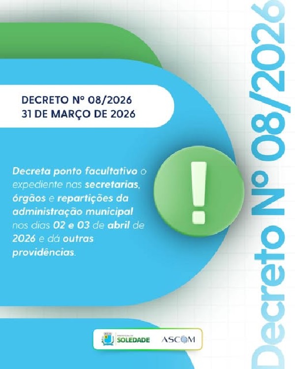 DECRETA FÉRIAS COLETIVAS EM SETORES DA PREFEITURA MUNICIPAL DE SOLEDADE E DÁ OUTRAS PROVIDÊNCIAS.
