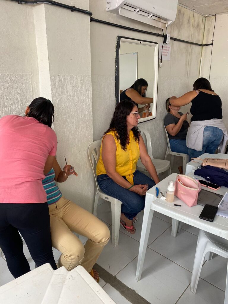 Na manhã desta segunda-feira (07), a primeira turma do Curso Designer de Sobrancelhas se reuniu na Sede do CRAS para mais uma aula prática com condução da professora Keliomara Oliveira.
